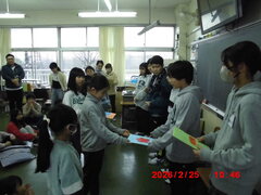 卒業まで1か月を切りました。お世話になった6年生に感謝の気持ちを伝えるため、学年ごとに歌やダンスなど楽しい出し物をしました。