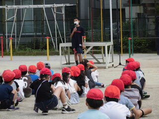 五輪オリンピックに出場した水球日本代表の「志水祐介」選手と、成蹊大学の学生の方々が来て、水泳の授業をしてくれました。