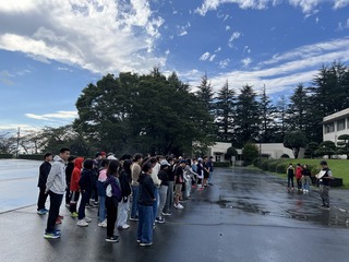 あいにくの雨の中ですが、いよいよ、移動教室の始まりです。