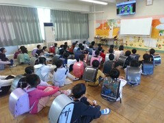 薬は、容量・用法を守って飲むこと、自分に処方された薬以外飲んではいけないことなど、学校薬剤師の先生が分かりやすく説明してくださいました。(6年1組担任)