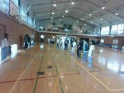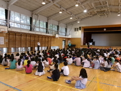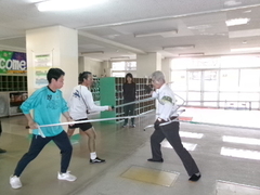 田無警察の方に不審者役をやっていただき先生方がさすまたの使い方をレクチャーしていただいている間に児童は速やかに体育館に避難しました。