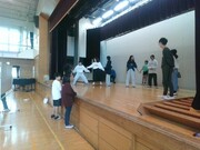 ディレクターをリーダーとして、個々の希望をもとに、演技部・脚本部・歌唱部・音響部・背景部・衣装部の6つの役割に分かれて活動しています。脚本部が一生懸命考えた演目を学年集会で披露すると、歓声と共に拍手が沸き起こりました。