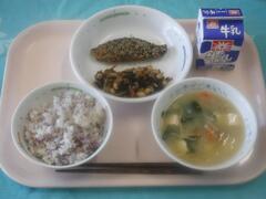 ゆかりごはん魚の利休焼きひじきの五目煮みそ汁牛乳