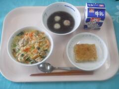 小正月きのこ雑炊松風焼きおしるこ牛乳