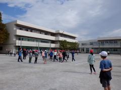持久走週間が20分休みに始まっています。先週は雨が降ってしまい、6年生は今日が初めての練習となりました。おしゃべりもせずに懸命に走っています。