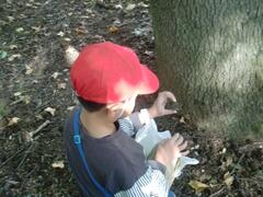 小金井公園に行き、秋探しの学習をしました。今年度も樹木の会の方に来ていただき、分かりやすい説明を受けながら楽しく秋のものを探すことができました。子どもたちは、どんぐりや面白い形の落ち葉等を見つけて、嬉しそうに袋に入れていました。また、樹木の会の方からフウの木や葉のお話を聞き、触ったり匂いを嗅いだりしながら秋を感じることができました。