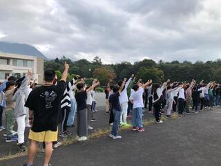 雨天のため、校舎内に集合して話を聞きました。