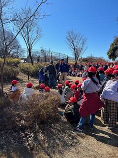 今回は、小金井公園の職員の方から公園の役割の話を聞き、「小金井公園かんさつビンゴカード」をもとに鳥の鳴き声を聞く、葉のにおいをかぐ、ツルツルした木をさわるなど、楽しみながら自然と親んできました。