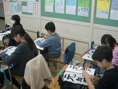 あと2週間で、新しい年を迎えます。2学期の学習も終わりに近づいてきました。書写の時間には、年明けに予定されている席書会に向けて、文字の練習をしました。4年生は「元気な子」を書きます。これまでに学習したことを生かしながら、お手本をよく見て真剣に筆を運んでいました。