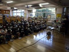 3時間目に1、2組。4時間目に3、4組と図書館でがん教育を行いました。