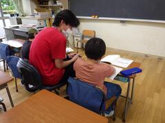 毎月1回程度、放課後に「補習の時間」を設定しています。今日は5月の補習日でした。これまでの学習の定着が十分でなかった子や、欠席のため授業が受けられなかった子などを対象に、少人数で指導を行っています。担任が一人一人に声を掛けながら、わかるまで、できるまで、粘り強く指導をしています。