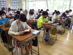 火曜日、木曜日、金曜日の朝の時間には、全学級で朝学習に取り組んでいます。10分程の短い時間ですが、積み重ねることで、学習内容の定着や、学習習慣を身に付けることに効果があると考えています。今日の朝の時間も、漢字や計算のドリルに取り組んだり、タブレット端末でeライブラリに挑戦したりする姿が見られました。