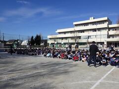 また、2時間目には、今年度最後の避難訓練を行いました。校長、副校長が不在時に大地震が発生したという想定です。子どもたちには予告はしませんでしたが、職員室にいる教職員が緊急放送をすると、口を閉じ、放送にしっかりと耳を傾け、素早く机の下に頭を入れるなどの避難行動をとることができました。二次災害に備えて全員が校庭に避難する際にも、整然と避難することができました。放送の指示に従い、ルールを守って避難する子どもたちを見て、一人一人に確かな実行力が身に付いていることを感じました。