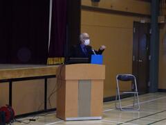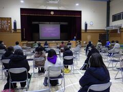 また、避難所運営協議会も土曜授業公開に合わせて行いました。避難所運営委員の皆様に集まっていただき、震度5以上の地震が起こり、本校を避難所として開設する場合の手順を確認しました。