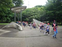 その後は、班ごとに分かれて「ポイントラリー」です。広い小金井公園をポイントを探しながら進み、ゴールを目指しました。すべてのチェックを済ませてゴールできた班は、嬉しそうに飛び上がっていました。迷子になる班もなく、最後まで男女協力して取り組む姿に、2年生の成長を感じ、ほほえましく眺めていました。