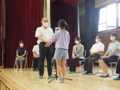 本日の修了式は放送で行いました。児童代表の言葉の担当は1年生でした。各学級の代表児童が、緊張しながらも、頑張った学習や自分が成長したことなどを、自分の言葉でしっかりと発表してくれました。