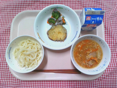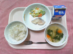 スープにはアルファベットや数字の形のマカロニを加えました。いつものスープにマカロニをプラスしただけですが、子どもたちはいつも喜んで食べてくれます。