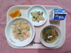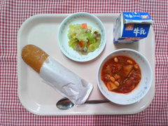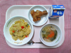 6年生が選ぶ好きな給食ランキング第5位のシュガー揚げパンです。いつの時代も大人気の揚げパンですが、今日は乳卵不使用のコッペパンを使用し、みんなでおいしくいただきました。