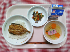 節分献立です。おにの形をしたかまぼこは、子どもたちに大人気で、とあるクラスでは、おにかまぼこじゃんけんが開催されていました。