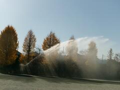 12月1日(月曜日)あたたかな小春日和の陽ざしが広がりました。この時期は空気がとても乾燥しています。校庭の砂ぼこりを防ぐために毎日1〜2回水を撒いています。
