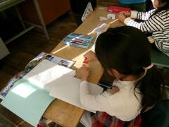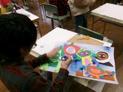 12月3日(水曜日)3年生が図工で「カラフルモンスター」を作っていました