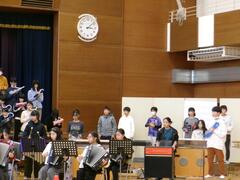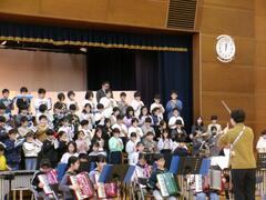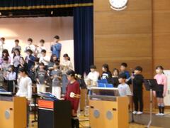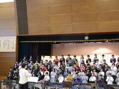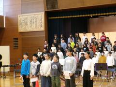 12月4日(木曜日)4年生が音楽会学年練習をしていました。「とてもいい」「いい音が出ているよ」と、音楽の先生は子どもたちをたくさん褒めていました。子どもたちは拍を意識しながら一生懸命練習していました。