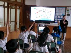 本日、4月18日(木曜日)3年生が外国語活動を行っていました。デジタル教科書を使用することで、子どもたちはそれぞれの国の様子を映像で知ったり、動画教材に合わせて挨拶の言葉を言ったりしていました。いろいろな国の言葉に親しむことができました。