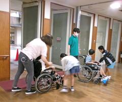 車椅子体験を行う4年生