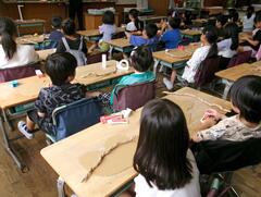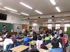 ビオトープ出前授業を受ける5年生