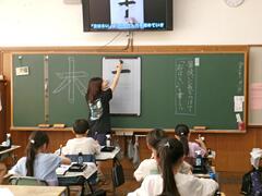 9月25日(木曜日)3年生が書写で毛筆を行っていました。「はらい」に気を付けて丁寧に書きました。「先生、見て見て」と一生懸命書いた字を見せる子どもたちは満足そうでした。