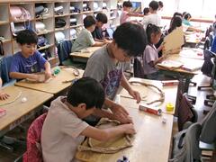 9月29日(月曜日)2年生が図工でピザの生地づくりをしていました