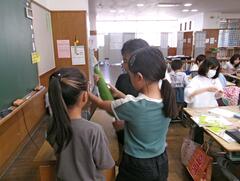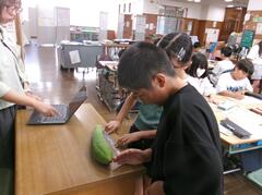 9月30日(火曜日)4年生が理科でヘチマの観察をしていました。実物のヘチマに触ったり、タブレットでヘチマの細部まで観察したりしていました。5月から9月までの観察カードを見ながらヘチマの生長を確認することができました。