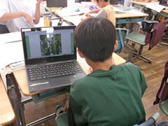 タブレットを使って詳しく観察する4年生