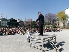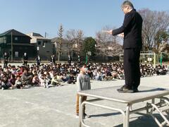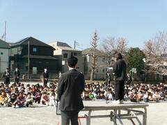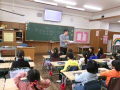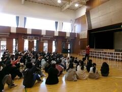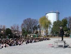 3月4日(水曜日)全校朝会では、校長先生から4月より開設される「青空学級」についてのお話がありました。また、「読書の達人」の表彰、市展・都展の表彰がありました。その他、給食委員会はマナーについてのクイズ発表を行いました。