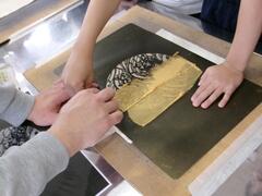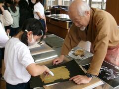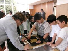 3月13日(金曜日)4年生が江戸染小紋(国指定伝統的工芸品)の出前授業を受けました。ゲストティーチャーを前に「教科書に載っている人だ!」と、子どもたちはとても驚いていました。染め物体験をすることで江戸時代から続く技術の高さと染小紋の美しさを実感することができました。本日は貴重な体験をありがとうございました。