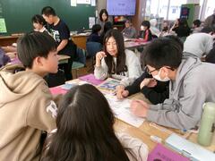 3月16日(月曜日)6年生がこれまで外国語の授業で学んだ表現を使ってトークをしていました。「好きな季節は?」「一番思い出に残っていることは?」「将来は何になりたい?」など、カードに書かれた質問に英語で答えながらすごろくを楽しんでいました。ALTの先生や外国語専科の先生のおがけで、子どもたちはリスニングやトークの力を身に付けることができました。