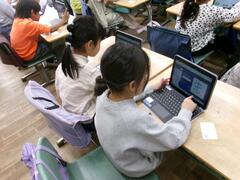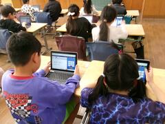 3月18日(水曜日)1年生がタブレットの使い方を学んでいました。ミライシードを利用して、計算や漢字に復習にチャレンジしたり、子ども電子図書館を利用して本を読んだりしていました。「楽しかった!」「頭がよくなりそう」と言う元気な声が聞こえてきました。