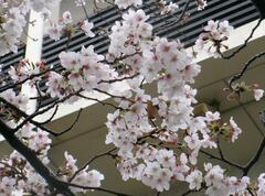 3月27日(金曜日)学校の桜は7分咲きほどです。気温が上がると桜がぐっと咲きすすみます。教職員は、年度末のさまざまな整理をしながら桜に目を留めていました。