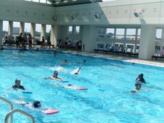 本日、6月13日(木曜日)5年生が今年度初めてプールに入りました。水温は27度で水の中は温かかったようです。もぐったり浮いたりと水慣れをした後、蹴伸びや泳ぐ練習を行いました。これから泳ぐ距離や泳ぐ時間を伸ばしていけるとよいです。