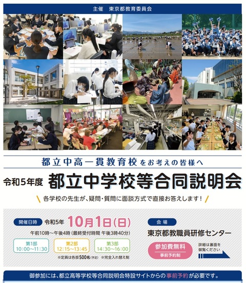 【チラシ】令和5年度都立中学校等合同説明会(PDF:4,111KB)