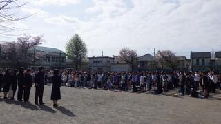 今日から新学期が始まりました。まずは2〜6年が校庭で始業式を行いました。桜吹雪の中、新しいクラス、先生と新たな一歩を踏み出しました。