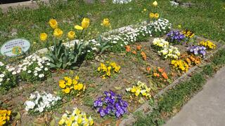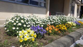 昨年12月1日に、栽培委員会の子どもたちと保護者・地域の皆様と一緒に花壇に花を植えました。春を迎え、その花がきれいに咲きほこっています。子どもたちの新しい一歩を、たくさんの花々も応援しています!