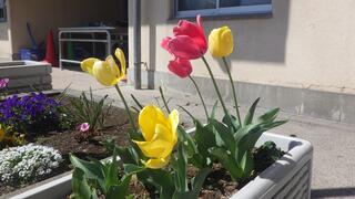昨年度の1年生が育てたチューリップもきれいに咲いています