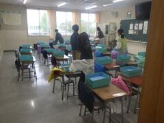 協力してしっかりと給食当番を頑張っている姿が見られました。