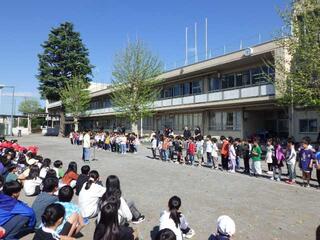 ピカピカの1年生と進級したばかりの初々しい在校生たちの正式な初対面です。