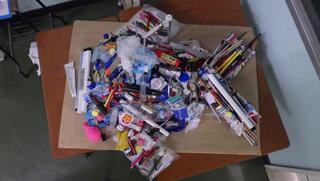環境委員会の児童が、校内で集めたごみや回収のなかった落とし物を活用して、ごみアートを制作しました。この活動を通して、ごみ問題や環境を守ることの大切さについて考えました。