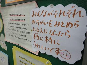 本日、道徳授業地区公開講座が開催され、中休みには、「親切・思いやり」をテーマに保護者の方と意見交流をする時間をいただきました。