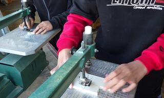 今、6年生は図工の授業の中で「電動糸のこぎり」を使った学習を行っています。