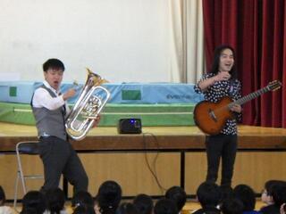 ユーフォニアム・バリトンとギターの素晴らしい演奏に合わせて、子供達も元気に手拍子を打っていました。