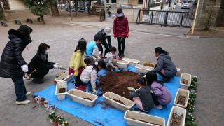 向台けやき会の皆様が、13日(水)にプランターに花植えをしてくださいました。放課後の自由遊びをしていた7人の子供たちも一緒に植えました。参加してくださった地域の方々は、5,6年前にお子さんが向台小を卒業した地域の皆さんです。久しぶりの小学生との触れ合いは楽しかっとの事。また参加したいとのお声をいただきました。いつもありがとうございます。(校長)